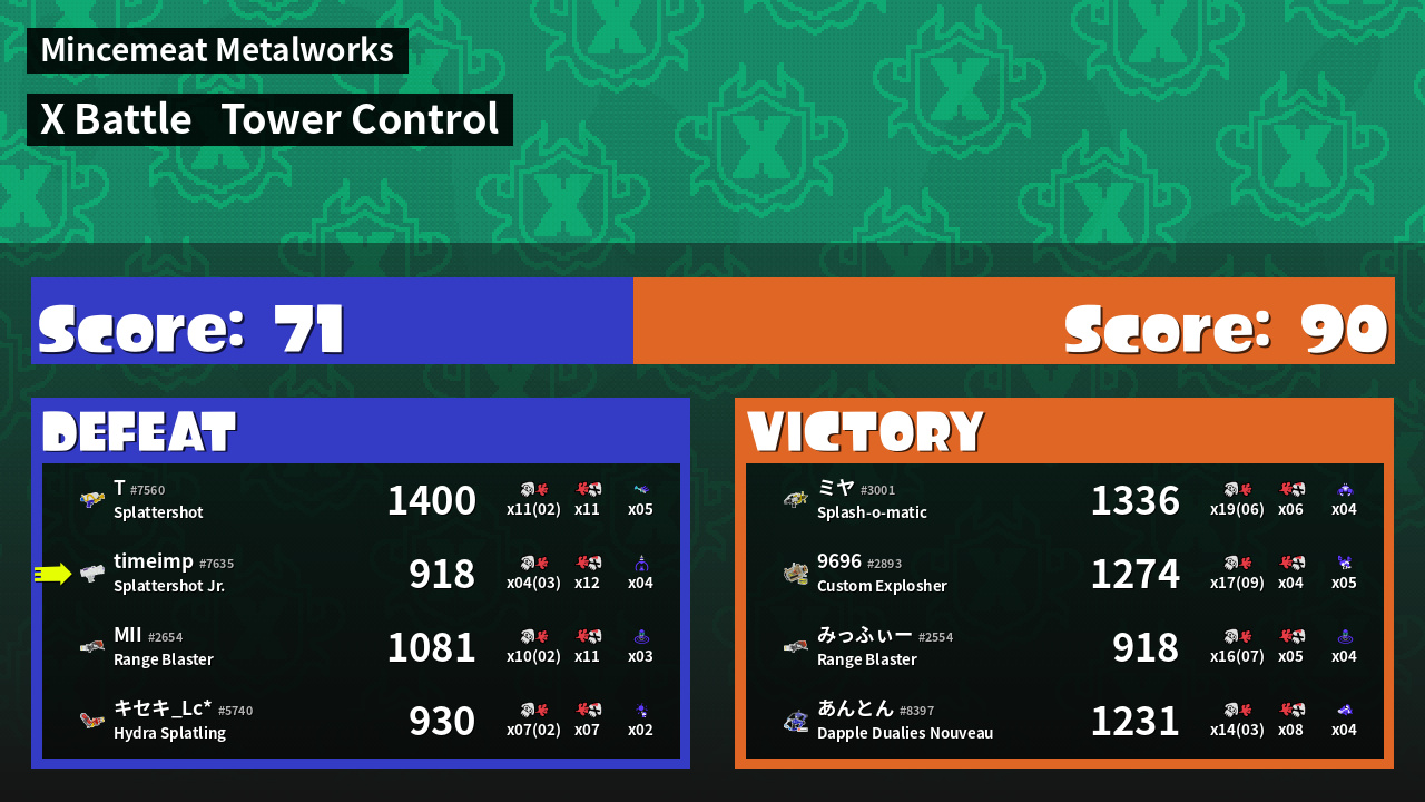 | Medals | #1 Score Booster #1 Splat Assister #1 Checkpoint Breaker | ||