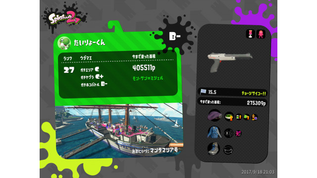 | Weapon | N-ZAP '85 ( Suction Bomb, Ink Armor) |