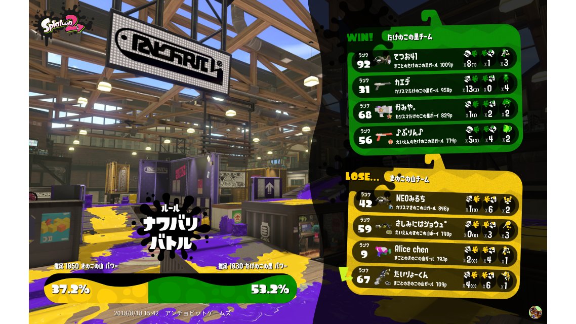 | Splatfest Title | きのこの山 Fiend 20 → きのこの山 Fiend 22 | ||||||||||||||||||||||||||||
