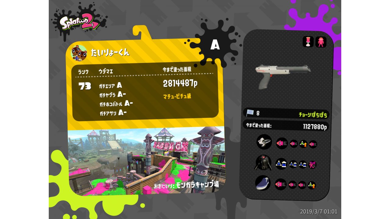 | Weapon | N-ZAP '85 ( Suction Bomb, Ink Armor) | |||||||||||||||||||||||||||||||
