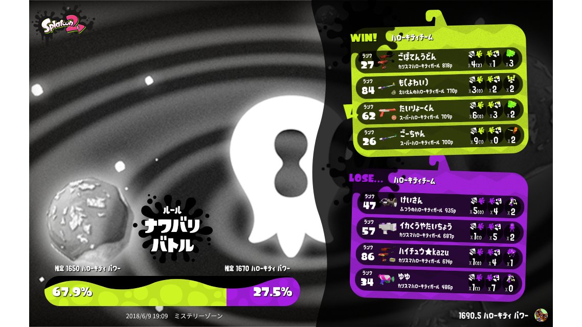 | Splatfest Title | ハローキティ Defender 2 → ハローキティ Defender 8 | |||||||||||||||||||||||||||||||||||||