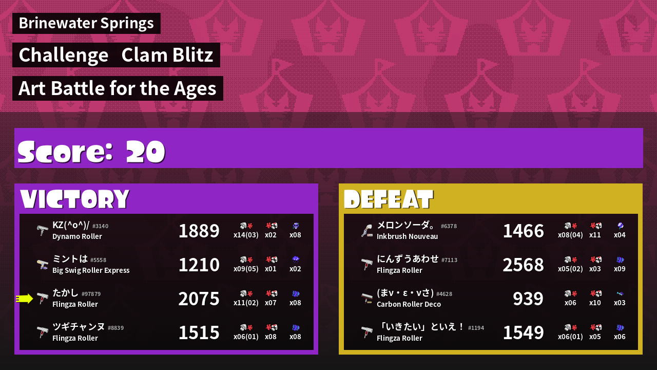 | Weapon | Flingza Roller ( Ink Mine / Tenta Missiles) | ||