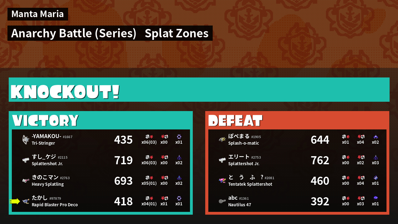 | Mode | Splat Zones - Anarchy Battle (Series) | ||