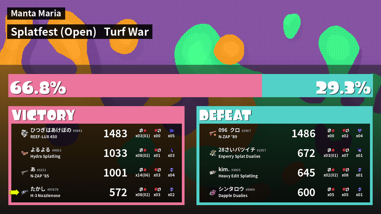 | Medals | #1 Popular Target #1 Ground Traveler #2 Overall Splatter | ||