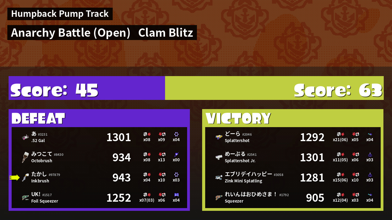 | Mode | Clam Blitz - Anarchy Battle (Open) | ||