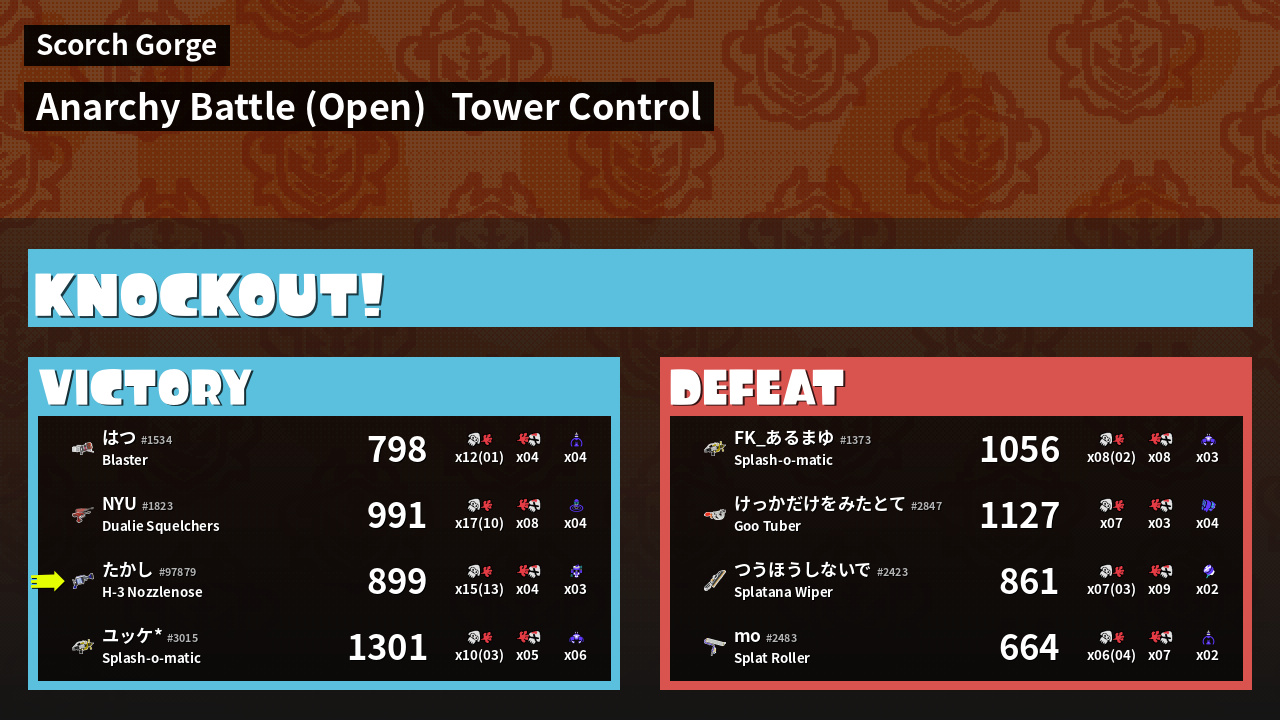 | Medals | #1 Splat Assister #1 Tower Stopper #1 Ink Consumer | ||