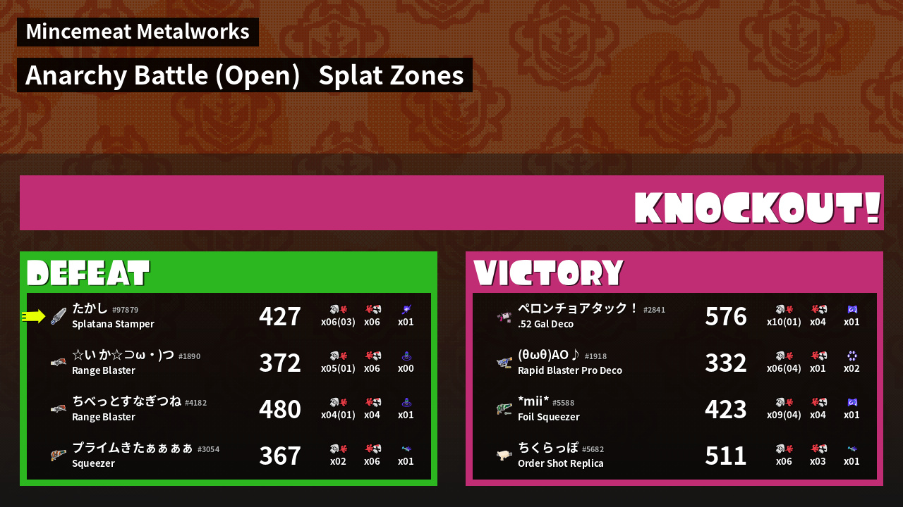 | Mode | Splat Zones - Anarchy Battle (Open) | ||