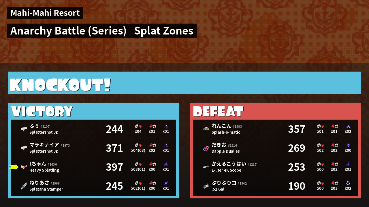| Mode | Splat Zones - Anarchy Battle (Series) | ||