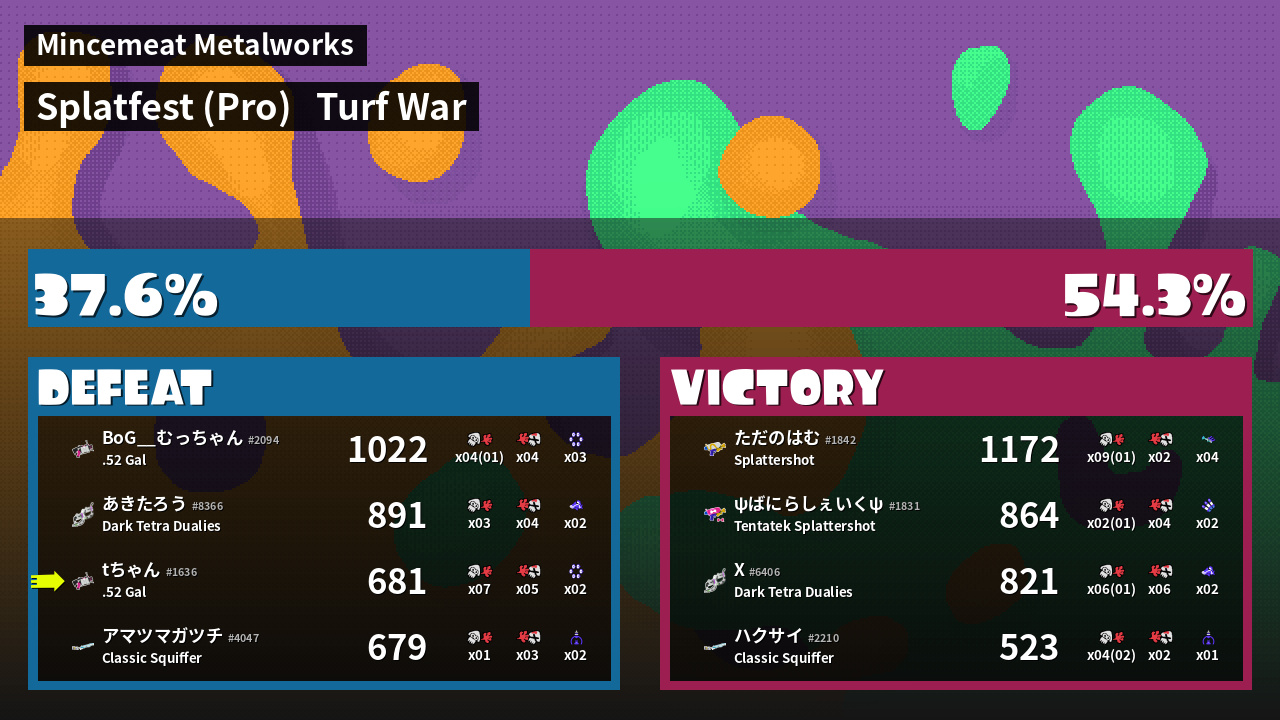 | Medals | #1 Overall Splatter #1 Popular Target #1 Enemy Splatter | ||