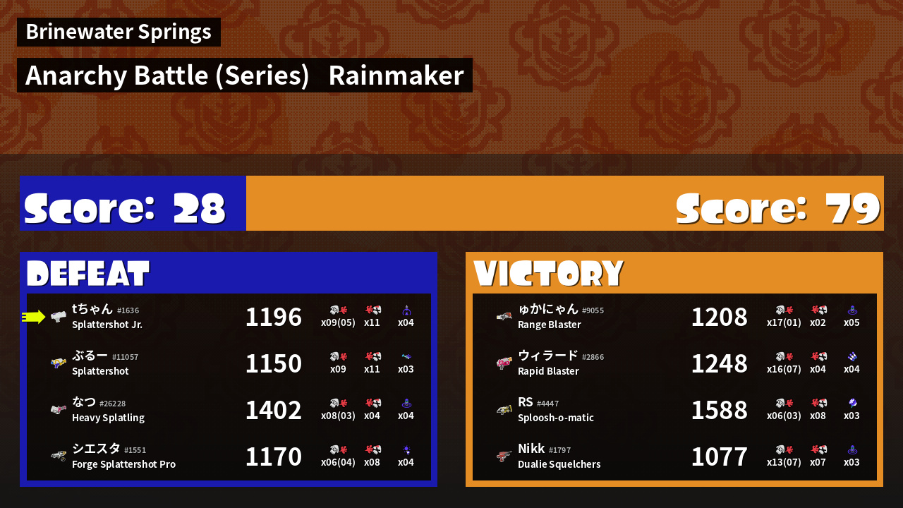 | Medals | #1 Overall Splatter #1 Score Booster Record-Score Setter | ||