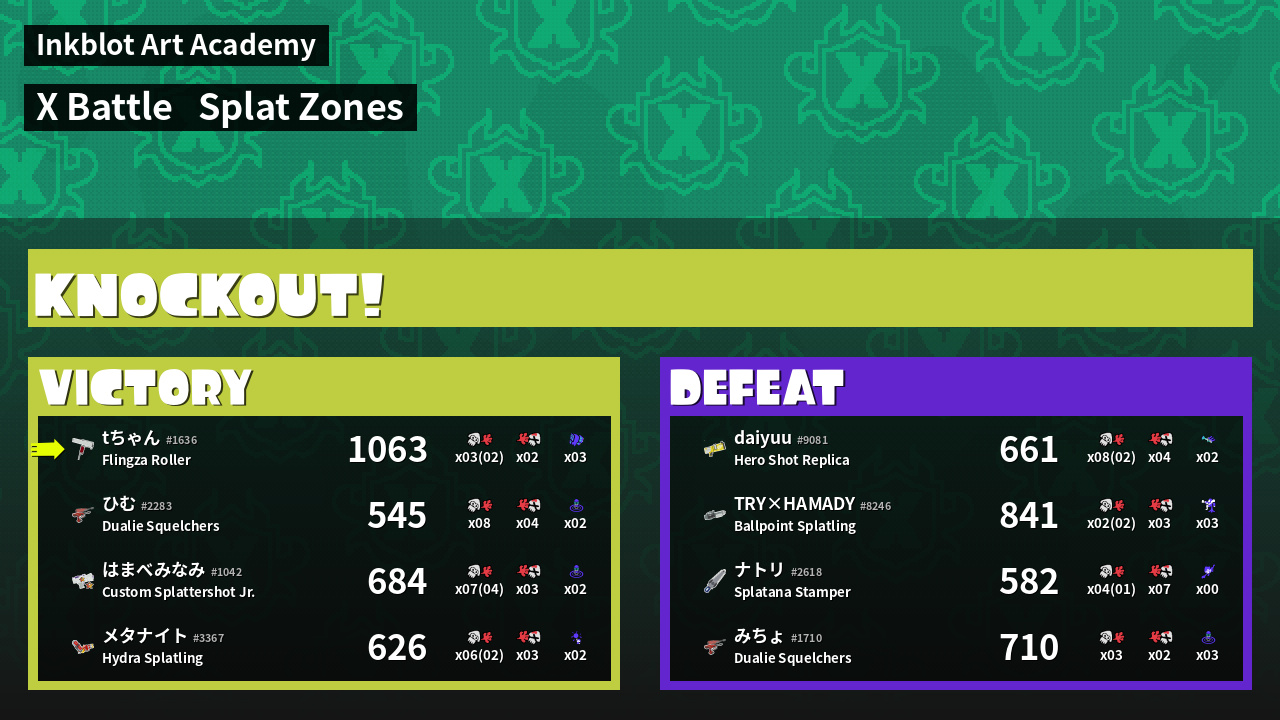 | Medals | #1 Splat Zone Inker #1 Turf Inker #1 Super Jump Spot | ||