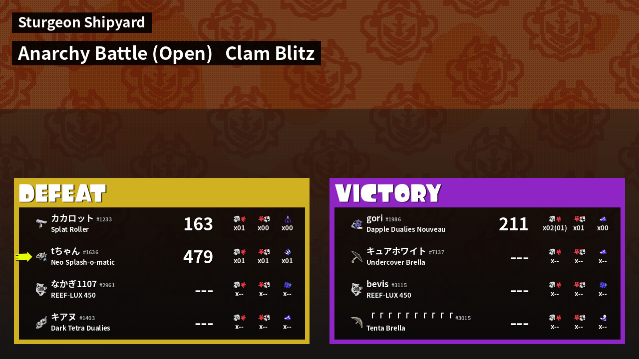 | Mode | Clam Blitz - Anarchy Battle (Open) | ||