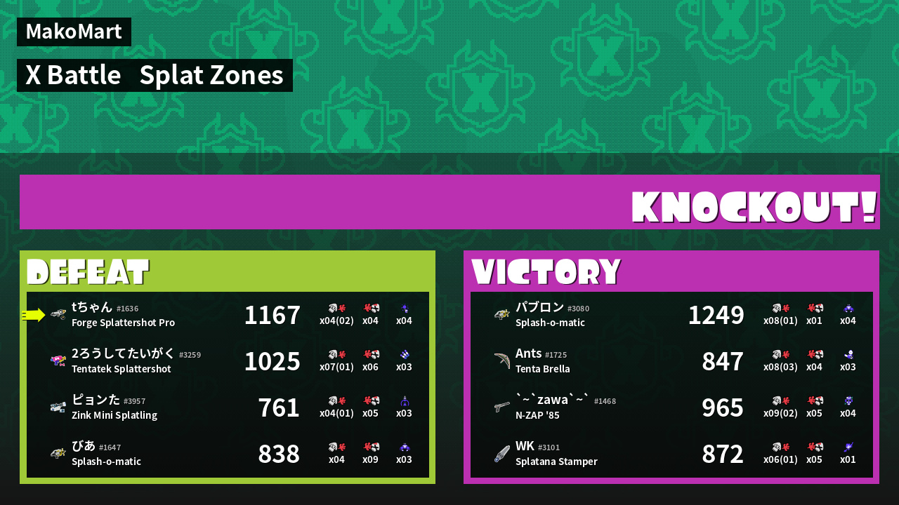 | Medals | #1 Splat Zone Inker #1 Turf Inker #1 Super Jump Spot | ||