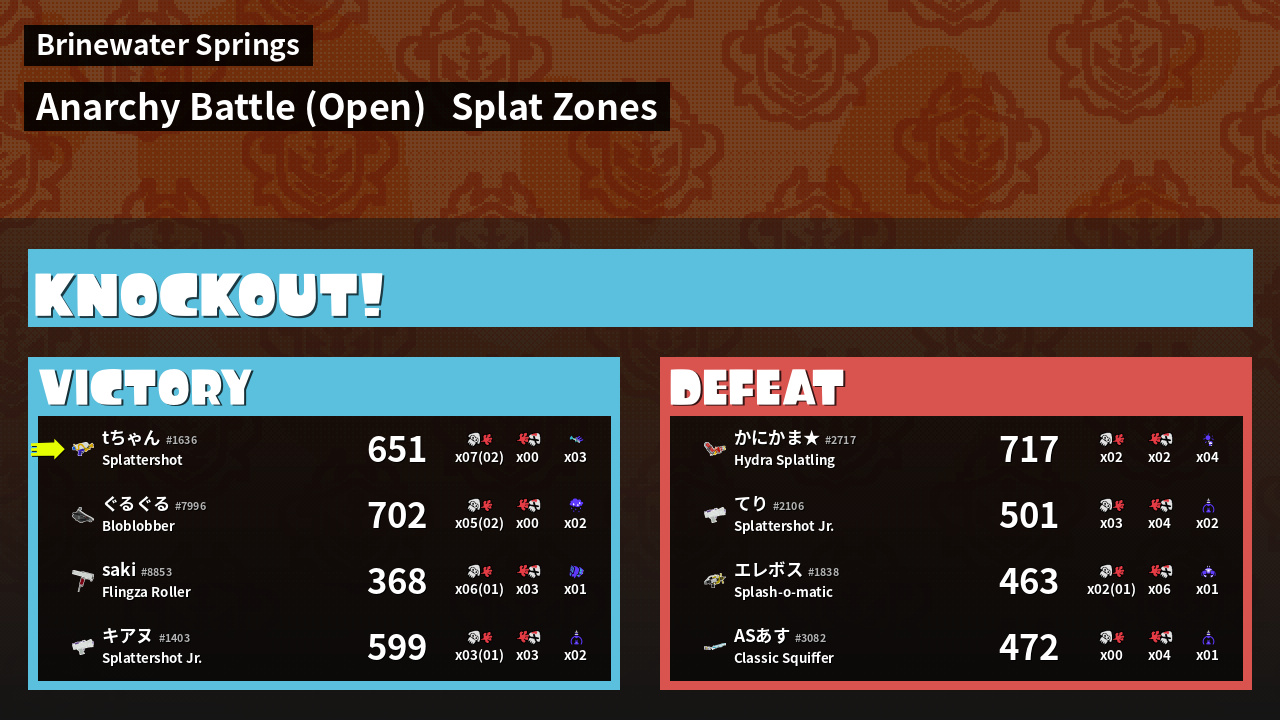 | Mode | Splat Zones - Anarchy Battle (Open) | ||