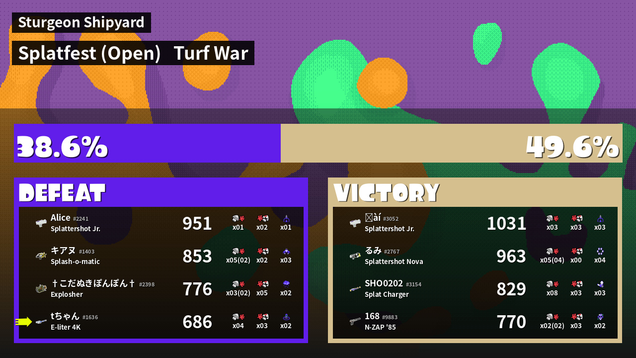| Medals | #1 Enemy Splatter #1 Wave Breaker User #2 Overall Splatter | ||