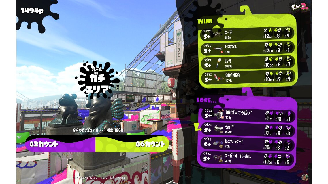 | Mode | Splat Zones - Ranked Battle | ||||||||||||||||||||||||||||||||||||||||||||||