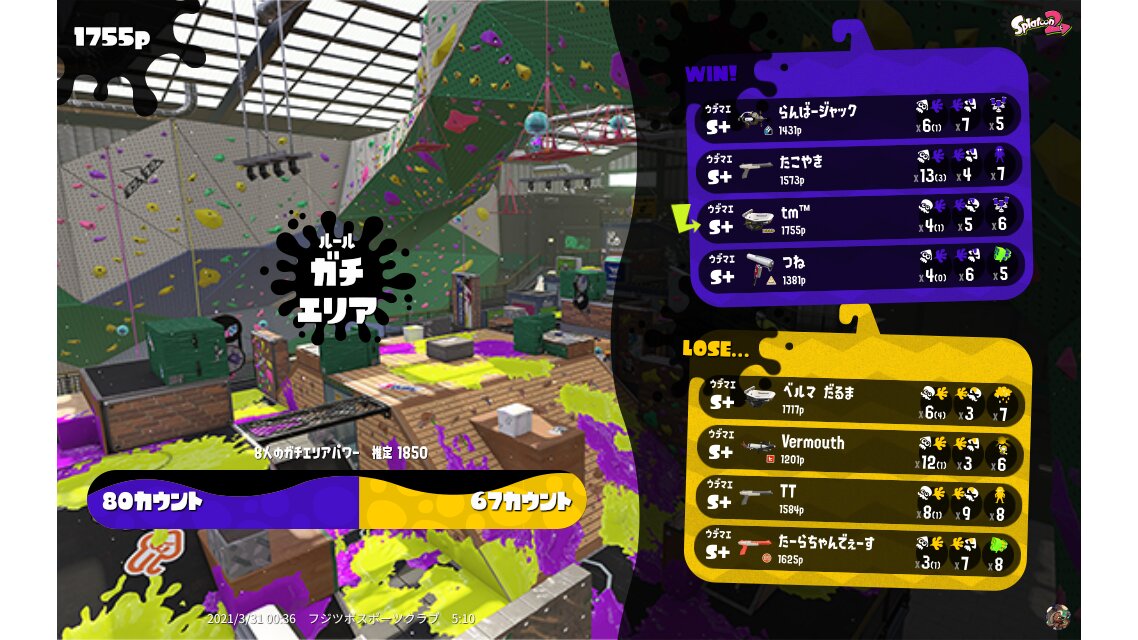 | Mode | Splat Zones - Ranked Battle | ||||||||||||||||||||||||||||||||||||||||||||||