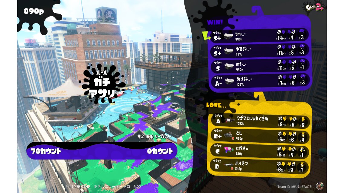 | Mode | Clam Blitz - League Battle (Quad) | ||||||||||||||||||||||||||||||||||||||||