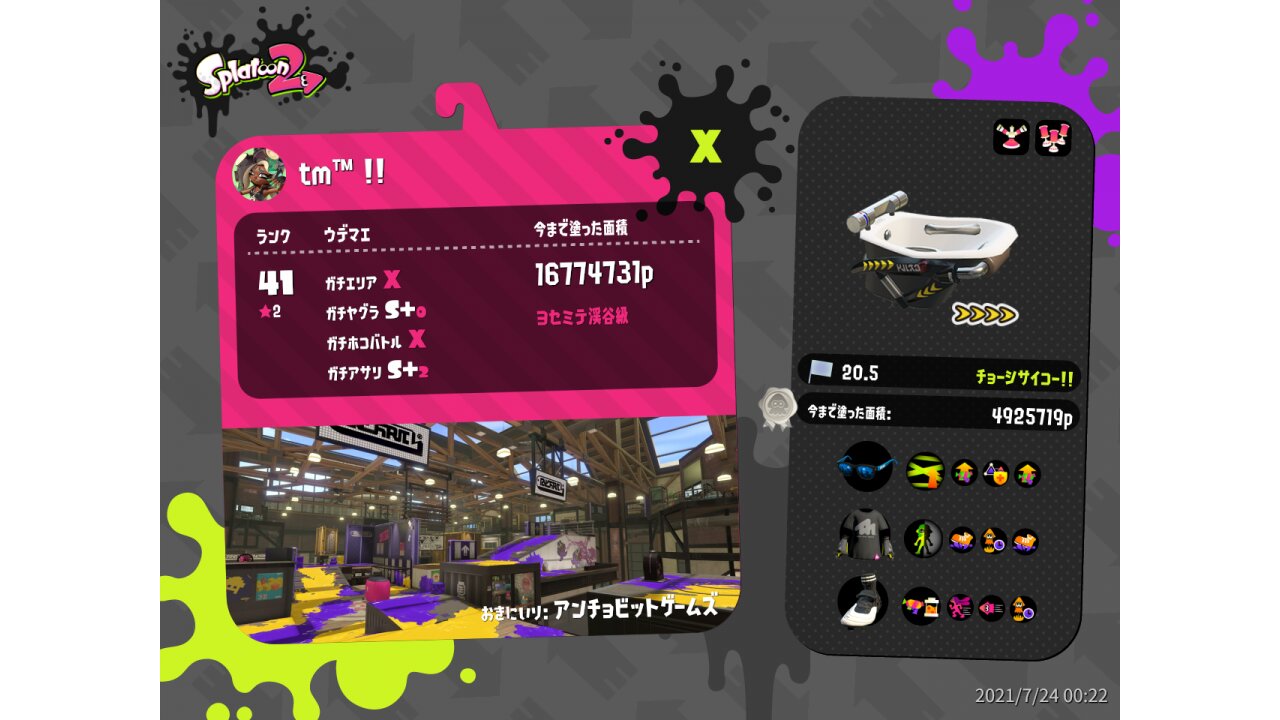 | Name | Weapon | Level | Rank | Inked | k+a/sp | k/d |