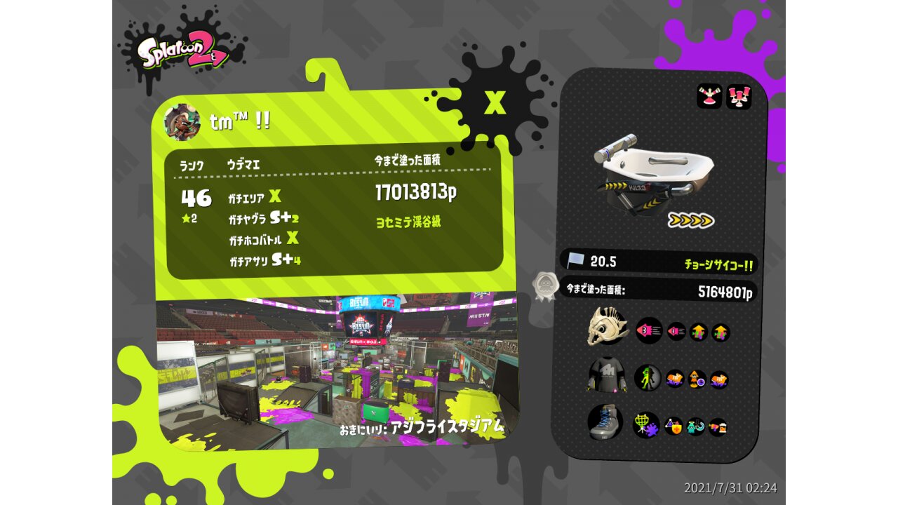 | Name | Weapon | Level | Rank | Inked | k+a/sp | k/d |