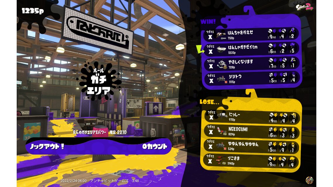 | Mode | Splat Zones - Ranked Battle | ||||||||||||||||||||||||||||||||||||||||||||||
