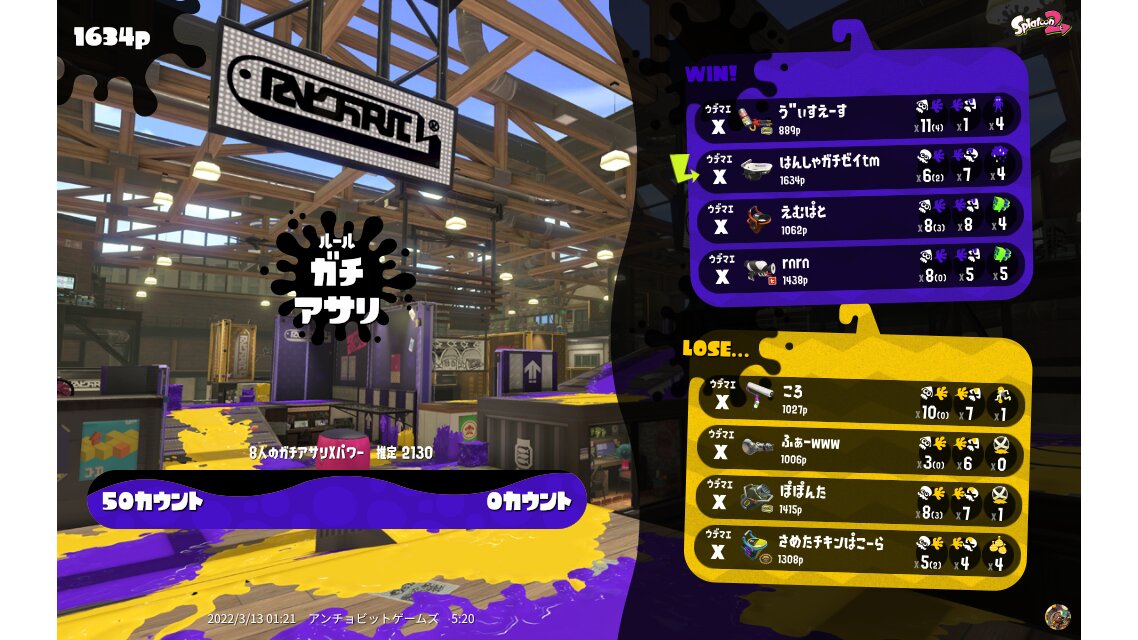 | Name | Weapon | Level | Rank | Inked | k+a/sp | k/d |