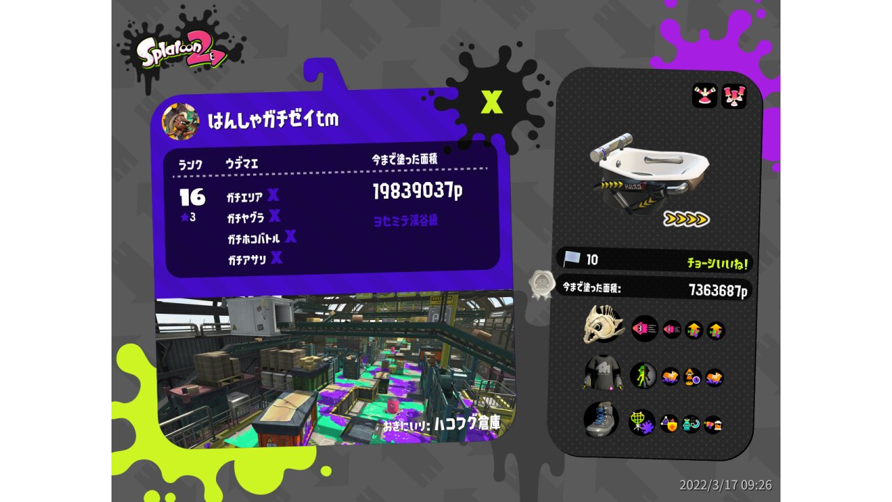| Name | Weapon | Level | Rank | Inked | k+a/sp | k/d |