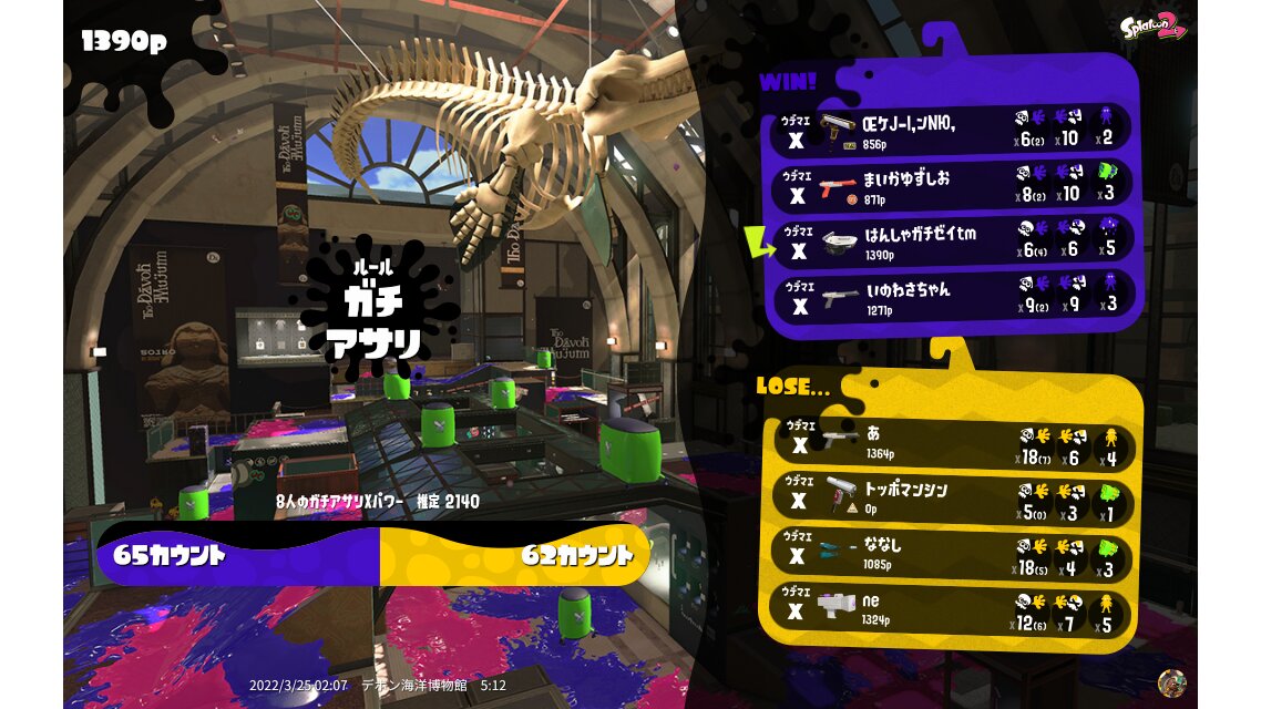 | Name | Weapon | Level | Rank | Inked | k+a/sp | k/d |