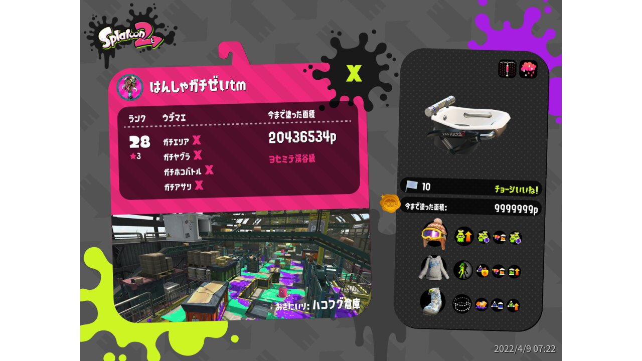 | SplatNet Battle # | 21,023 | |||||||||||||||||||||||||||||||||||||||||||||||||