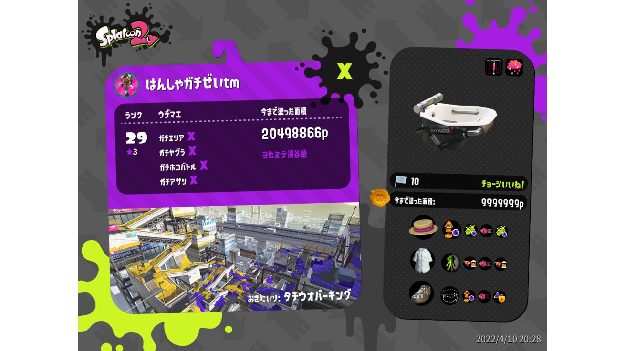 | SplatNet Battle # | 21,106 | ||||||||||||||||||||||||||||||||||||||||