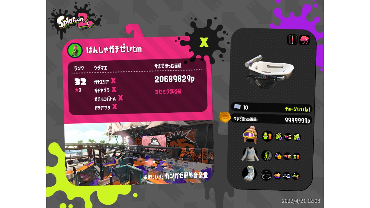 | SplatNet Battle # | 21,347 | |||||||||||||||||||||||||||||||||||||||||||||||||
