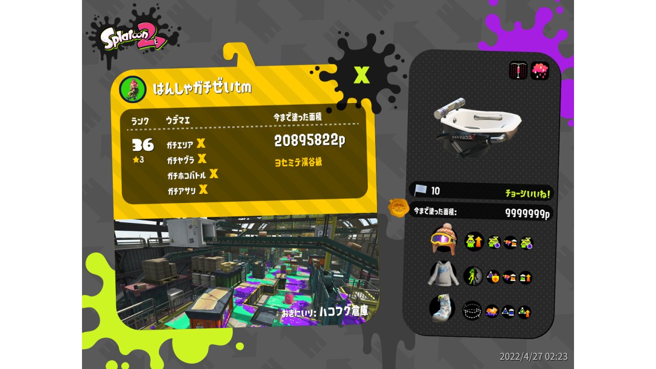 | SplatNet Battle # | 21,623 | |||||||||||||||||||||||||||||||||||||||||||||||||