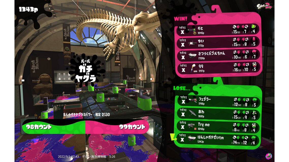 | Name | Weapon | Level | Rank | Inked | k+a/sp | k/d |
