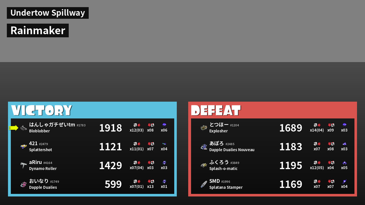 | Weapon | Bloblobber ( Sprinkler / Ink Storm) | ||