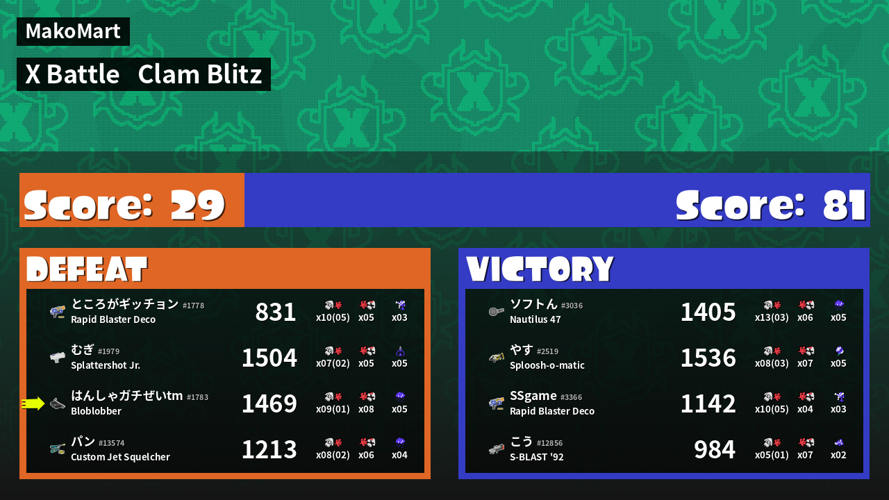| Weapon | Bloblobber ( Sprinkler / Ink Storm) | ||