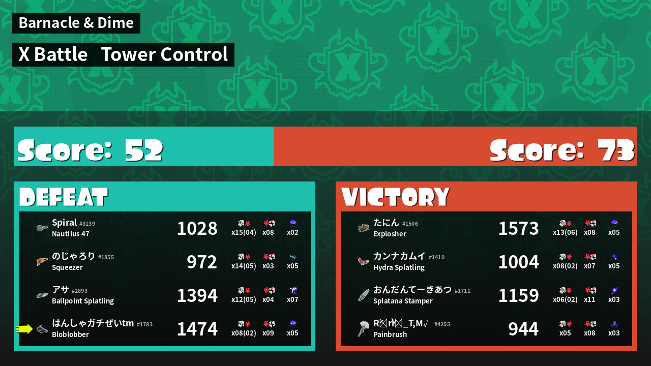 | Medals | #1 Turf Inker #1 Damage Taker #1 Ink Storm User | ||