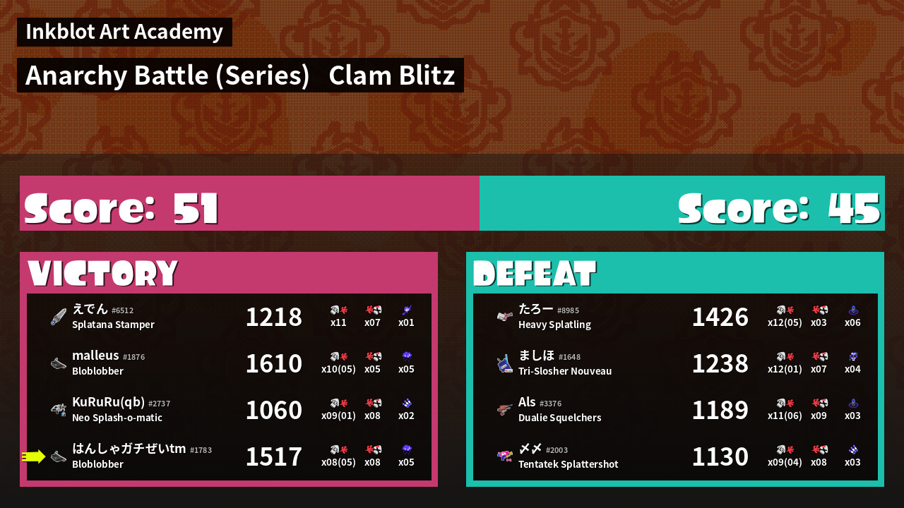 | Mode | Clam Blitz - Anarchy Battle (Series) | ||
