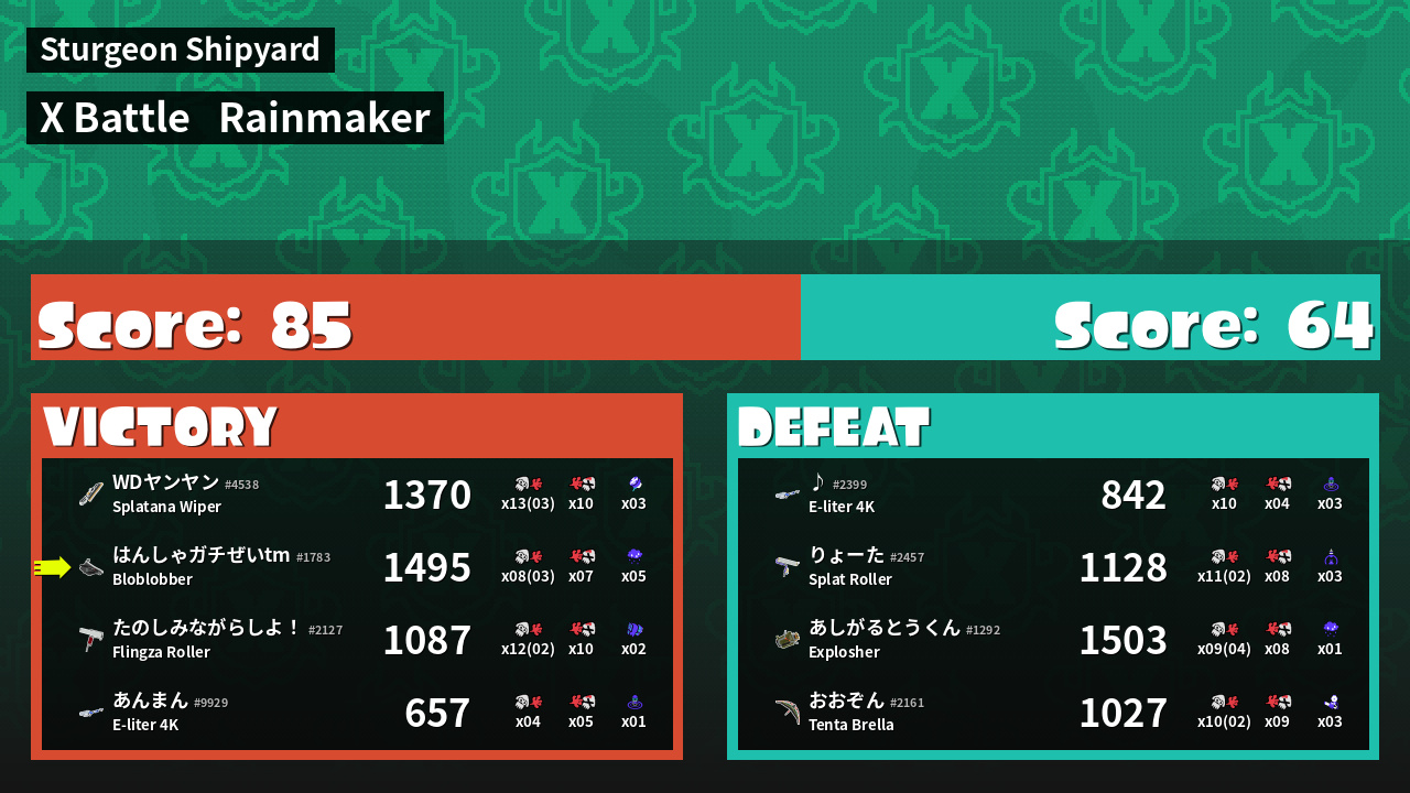 | Weapon | Bloblobber ( Sprinkler / Ink Storm) | ||