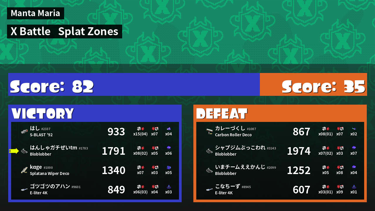 | Mode | Splat Zones - X Battle | ||