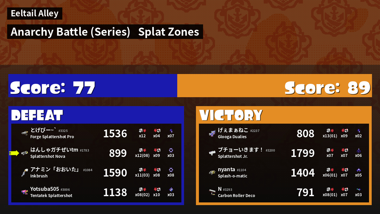 | Mode | Splat Zones - Anarchy Battle (Series) | ||