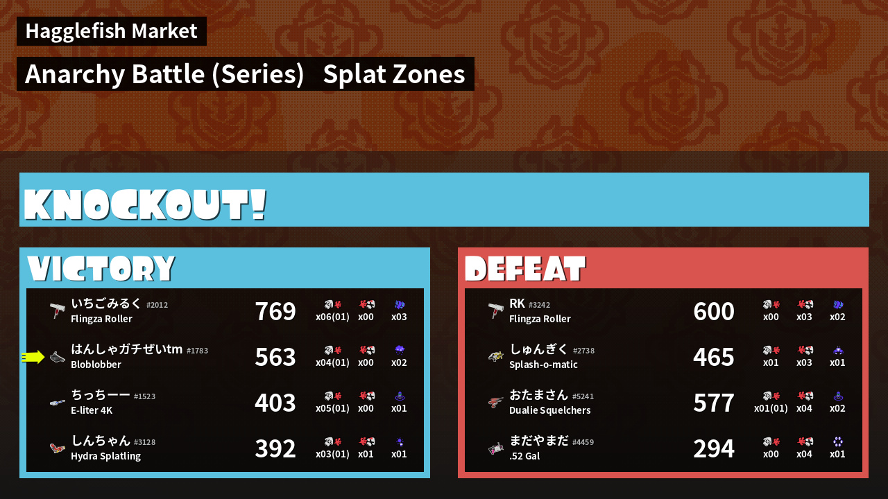 | Medals | #1 Super Jump Spot #1 Splat Assister #1 Ink Consumer | ||||