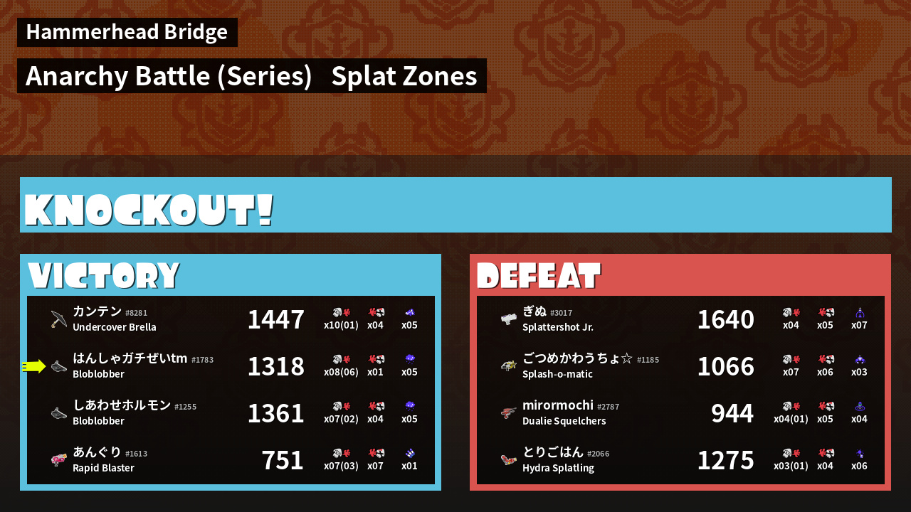 | Mode | Splat Zones - Anarchy Battle (Series) | ||||
