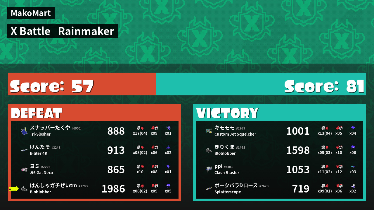 | Weapon | Bloblobber ( Sprinkler / Ink Storm) | ||