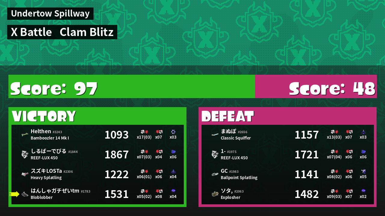 | Mode | Clam Blitz - X Battle | ||