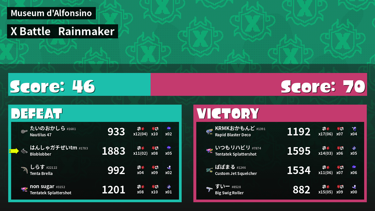 | Medals | #1 Turf Inker #1 Super Jump Spot #1 Enemy Splatter | ||