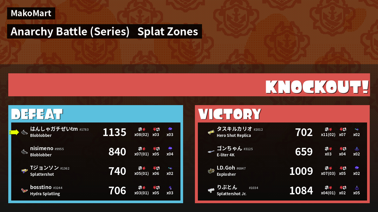 | Mode | Splat Zones - Anarchy Battle (Series) | ||||