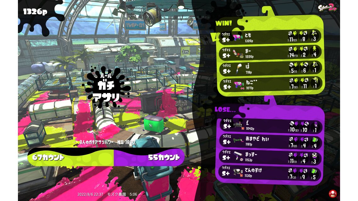 | Name | Weapon | Level | Rank | Inked | k+a/sp | k/d |