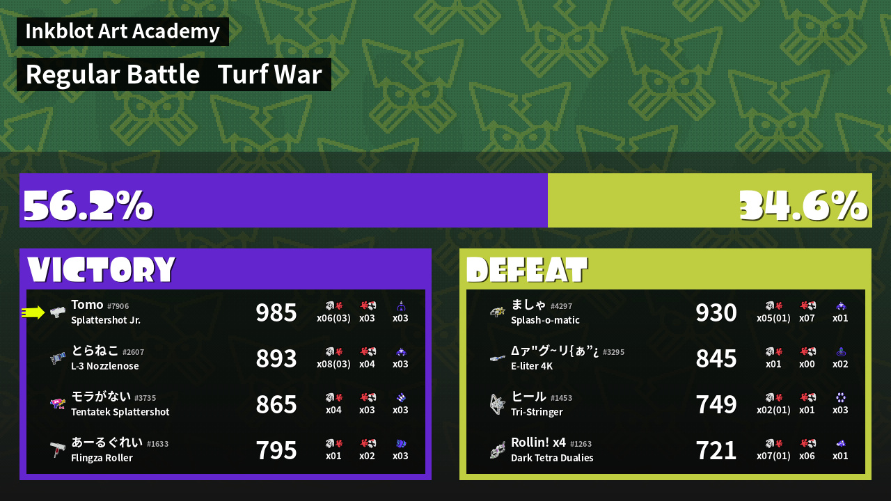 Kills / Deaths | 3 + 3 / 3 = Kill Ratio: 1.00 | ||