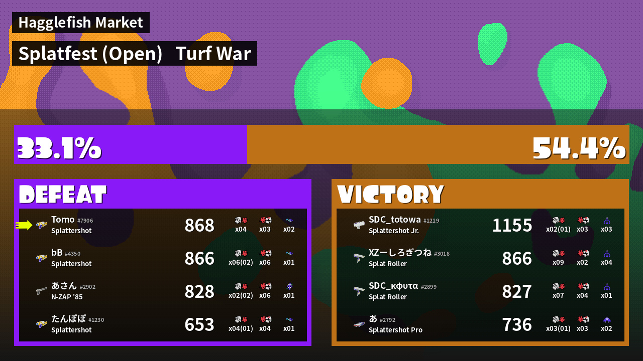 | Medals | #1 Turf Inker #1 Super Jump Spot #1 Enemy Splatter | ||
