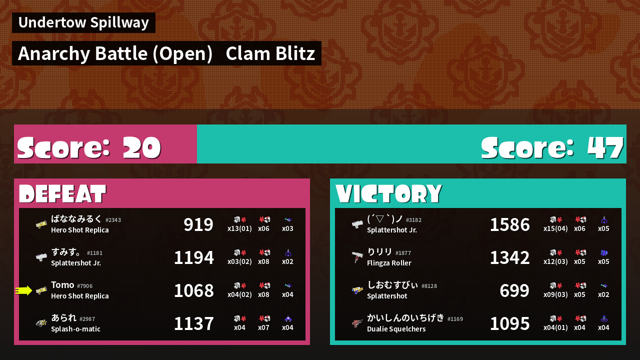 | Mode | Clam Blitz - Anarchy Battle (Open) | ||